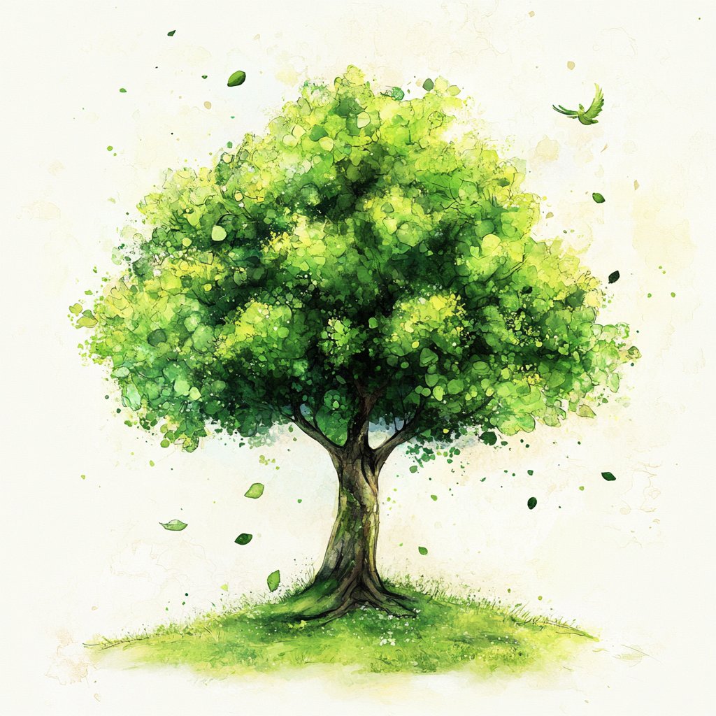 🖌️ Watercolors – A soft and ethereal portrayal of trees in fluid washes of color.